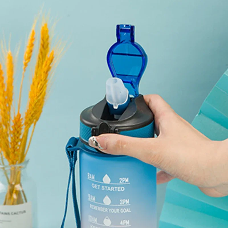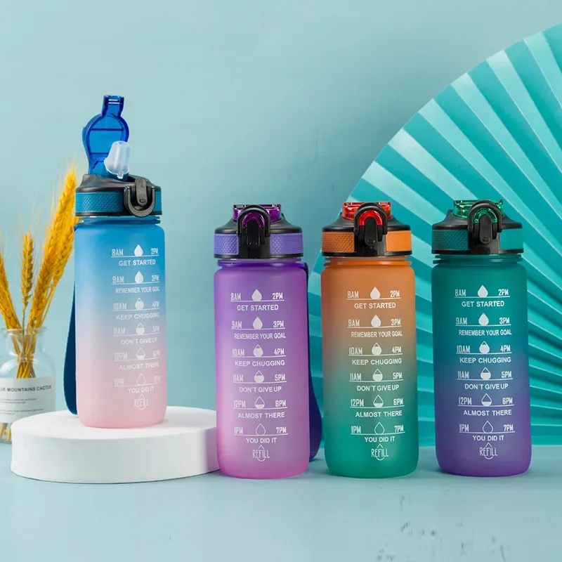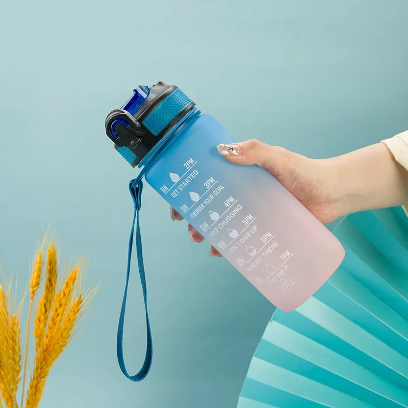 600ML Portable Water Bottle Motivational Sports Water bottle with Time Marker Leak-proof Cup for Outdoor Sport Fitness